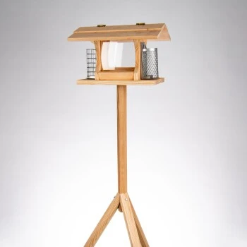 Zusätzlich verfügt das Futterhaus über zwei integrierte Draht-Silos zum Befüllen mit AniForte Meisenknödeln oder Nüssen. Das hochwertige Vogelhäuschen kann auch auf der Terrasse oder dem Balkon aufgestellt werden.