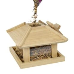 Das elegante Futterhaus für Vögel ist offen gestaltet und ermöglicht uneingeschränktes Beobachten der Tiere bei der Futteraufnahme. Ein Satteldach über der Futterstation schützt die Nahrung gegen Regen und Schnee und bietet auch bei schlechtem Wetter einen geschützten Futterplatz.