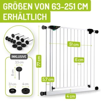 Unser Angebot umfasst Türschutzgitter in einer Breite von 63-111 cm, um den Durchgang mit einem Türschutzgitter abzusperren (Bitte die richtige Größe auswählen!). Wählen Sie aus verschiedenen Breiten, darunter