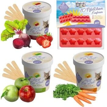 Gemeinsam mit der Katze ein Eis schlemmen? Wir machen es möglich! Mit unserem ChronoBalance Katzen-Eis in den Sorten Cool Carrot, Cool Apple und Cool Berry bieten wir der Katze nicht nur eine angenehme Abkühlung an warmen Tagen, sondern versorgen sie oberndrein auch mit Spurenelementen, Mineralien und B-Vitaminen.