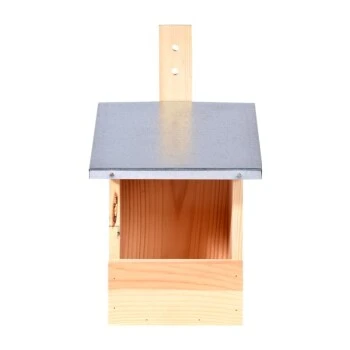 Der Nistkasten hat ein verzinktes Dach und ist auch FSC Holz gefertigt.