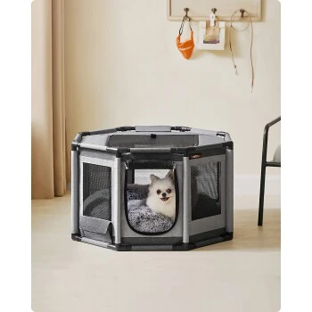 - Die Hundebox lässt sich problemlos in wenigen Minuten auf- und abbauen.
