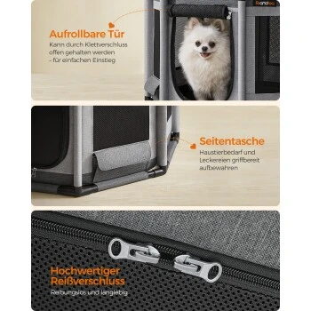 - Die kleine Aufbewahrungstasche bietet Stauraum für Futter und Tierzubehör.