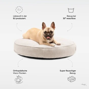 Das orthopädische Hundebett ist mit Memoryschaum-Flocken gefüllt. Diese sind atmungsaktiv und passen sich perfekt dem Körper deines Vierbeiners an.