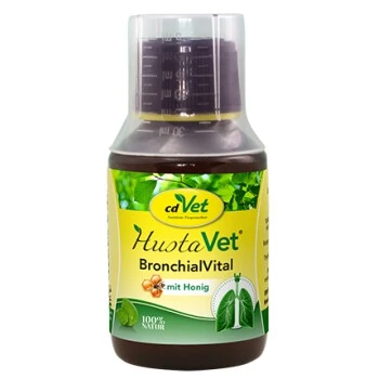 HustaVet BronchialVital enthält ätherische Öle aus Thymian, Fenchel und Anis, die den Selbstreinigungsmechanismus der Bronchien verbessern können. Die im Spitzwegerich enthaltenen Schleimstoffe legen sich schützend und beruhigend auf die empfindlichen Schleimhäute der Atemwege.
