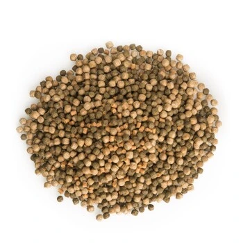 Diese Mischung haben wir beruhend auf dem Stand der aktuellsten Forschungsergebnisse zusammengestellt. Hier wurden nur die wertvollsten Bestandteile miteinander kombiniert. Insgesamt ist diese Nahrung vom Fisch leicht zu verdauen, was die Nährstoffaufnahme der Fische verbessert und die Wasserbelastung minimiert. Weil es sich um eine schwimmende Mischung handelt, ist eine gute Beobachtung der Nahrungsaufnahme Ihrer Fische möglich. (Der ca. 20%tige Anteil an sinkendem Futter ist „semi“ sinkend)
