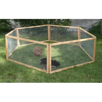 Kann z.B. als Sechseck oder als Quadrat mit Dach aufgestellt werden. Auf diese Weise können Sie das Freigehege so aufstellen, dass Elemente zum Schutz vor Raubvögeln als Abdeckung verwendet werden, oder Ihre Kleintiere viel Platz zum Toben haben.