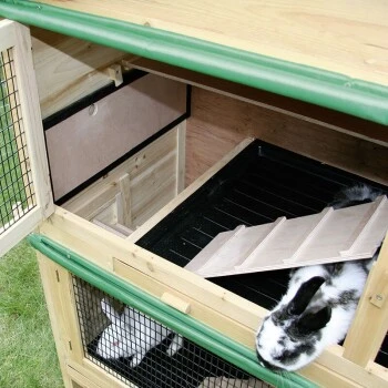 Kapazitätsauslastung für max. 2 Kaninchen. Um weitere Tiere beherbergen zu können, sollte das KERBL Freilaufgehege Appartement (siehe Produktzubehör) in Verbindung mit dem Stall zur Verfügung gestellt werden. Idealerweise sollte der Stall unter einem Vordach an der Wetter abgewandten Seite stehen.