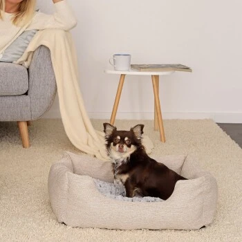 Dieses formschöne Hundebett ist besonders weich und bietet Ihrem Vierbeiner einen gemütlichen Schlaf- und Rückzugsplatz. Das innere Wendekissen verleiht dem Hundeplatz durch verschiedene Stoffe ein individuelles Design und noch mehr Gemütlichkeit. Durch die modernen und warmen Farben lässt sich das Haustierbett besonders gut in jede Wohnsituation integrieren. Der rutschfeste Boden verhindert das Wegrutschen beim Ein- u. Ausstieg und der tiefe Einstieg ermöglicht einen einfachen Zugang auch für kleine Hunde. Das Hundebett ist verschiedenen Farben und Größen erhältlich. Die genauen Maße können Sie den Bildern entnehmen.