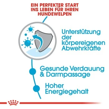 ROYAL CANIN X-Small Puppy Futter ist speziell auf die Bedürfnisse von Welpen sehr kleiner Hunderassen abgestimmt. Es unterstützt wissenschaftlich nachgewiesen die Entwicklung der körpereigenen Abwehrkräfte von Welpen durch einen Nährstoffkomplex mit Vitamin E und C. Es ist mit einer Omega-3-Fettsäure (DHA) angereichert, die wissenschaftlich nachgewiesen die Gehirnentwicklung von Welpen unterstützt und den Lernprozess beim frühen Welpentraining fördern kann. Zudem unterstützt eine Kombination aus Präbiotika (MOS) & hochverdaulichen Proteinen eine ausgewogene Darmflora und eine gesunde Verdauung. Das Trockenfutter ROYAL CANIN X-Small Puppy eignet sich für Welpen sehr kleiner Hunderassen im Alter von 2-10 Monaten. Als sehr kleine Hunderassen gelten typischerweise Hunde mit einem Gewicht von unter 4kg im ausgewachsenen Alter.